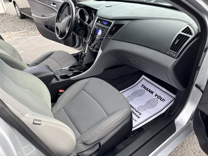 This Sonata shows excellent overall condition inside and out. The Silver exterior presents clean and well-maintained, and the Gray interior shows minimal wear. Mileage is under 90,000 miles and has averaged less than 7,000 miles per year, reflecting light use relative to the vehicle’s age.