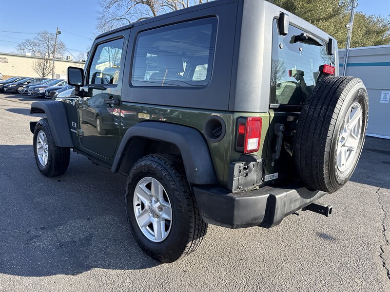 2009 Jeep Wrangler X — Jeep Green Metallic Clear Coat exterior with Dark Slate Gray/Medium Slate Gray cloth interior. Powered by the factory 3.8L V6 producing 202 hp and 237 lb-ft of torque, this two-door Wrangler has below 121,000 miles (averaging under 7,000 miles per year) and is described as being in excellent overall condition. EPA fuel economy is approximately 15 MPG city and 19 MPG highway.