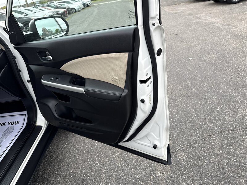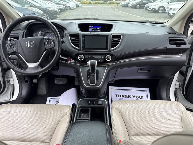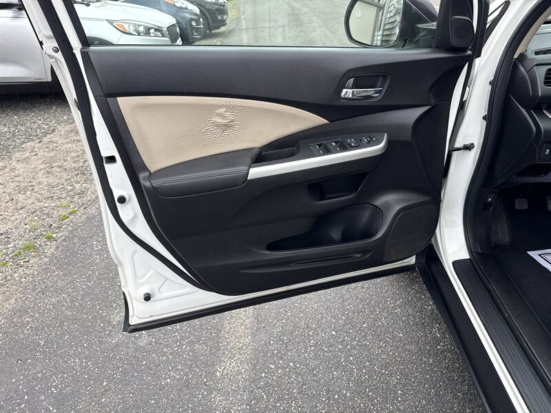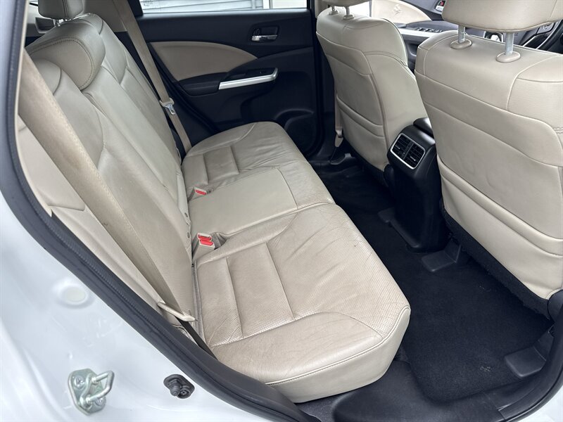 2015 Honda CR-V EX-L — 2.4L I4 (185 hp / 181 ft-lbs) with continuously variable transmission (CVT). Exterior: White Diamond Pearl. Interior: Beige leather. Fuel economy: 26 MPG city / 33 MPG highway. Vehicle is in excellent overall condition and has a clean CARFAX report.
