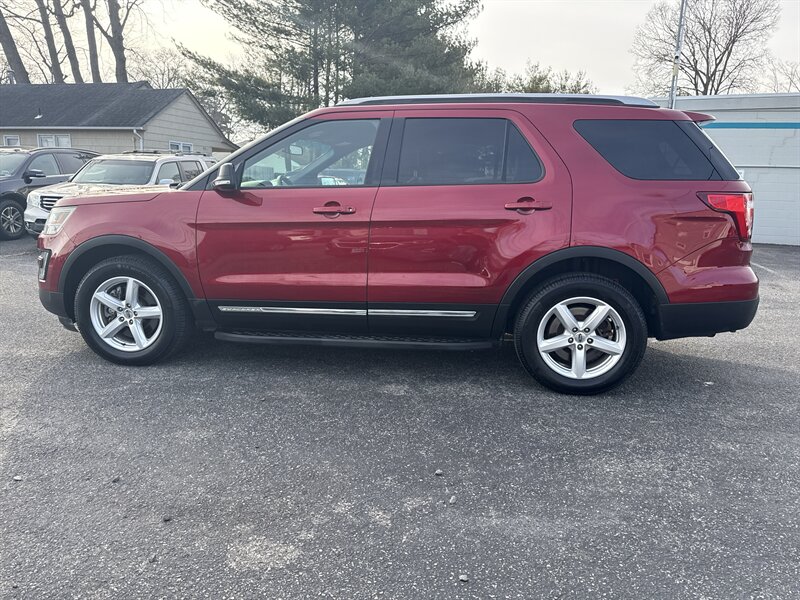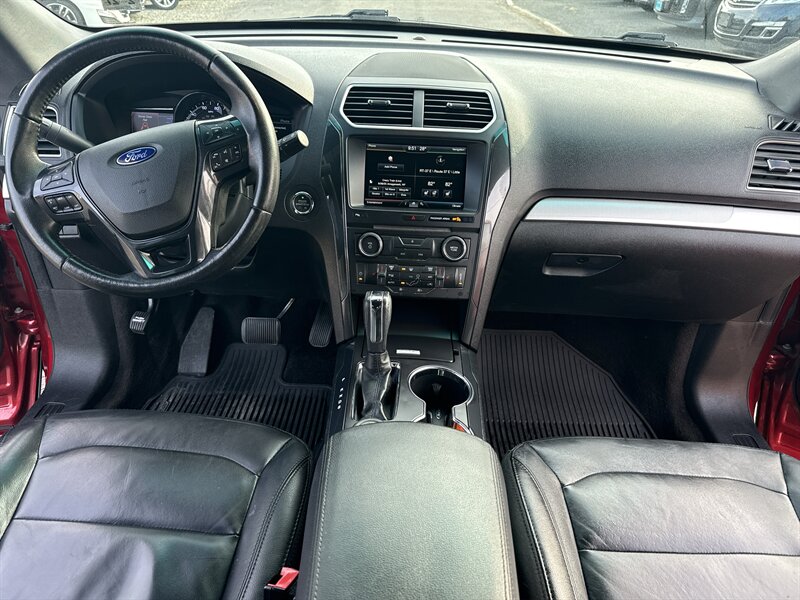 2016 Ford Explorer XLT — Ruby Red Metallic Tinted Clearcoat exterior with Medium Light Camel interior. Powered by the 3.5L V6 (290 hp, 255 lb-ft) and delivering an EPA-estimated 16 MPG city / 23 MPG highway. This example has excellent overall condition, a clean CARFAX, a single owner, and fewer than 79,000 miles (averaging under 8,000 miles per year).