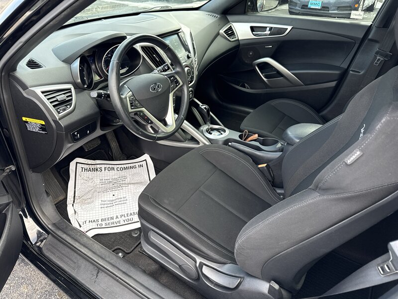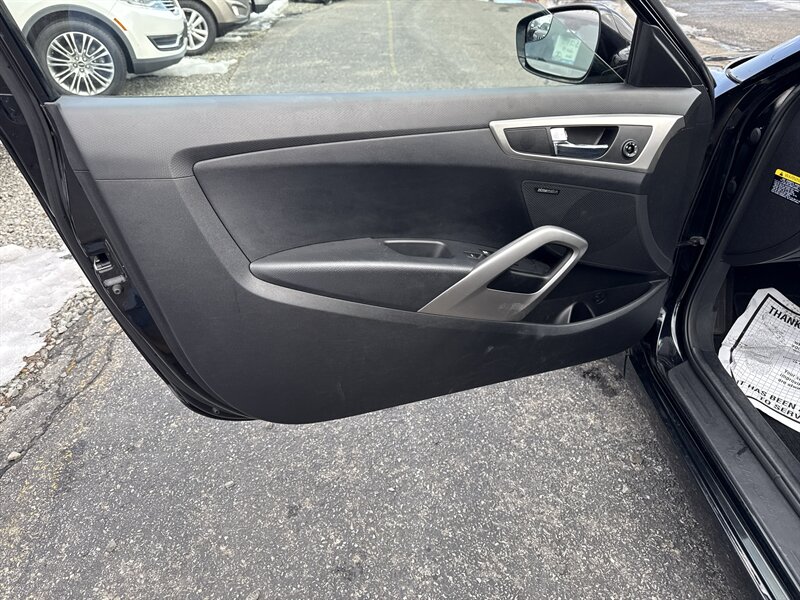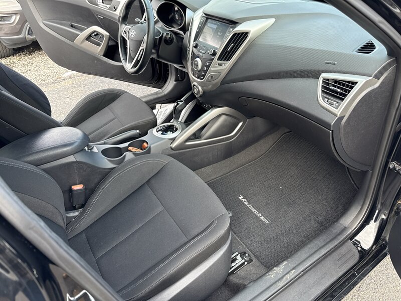 - Exterior features: Body-matched bumpers and trim, compact sport styling, and factory wheel package (varies by trim). Brightwork and styling cues consistent with the Veloster design language.