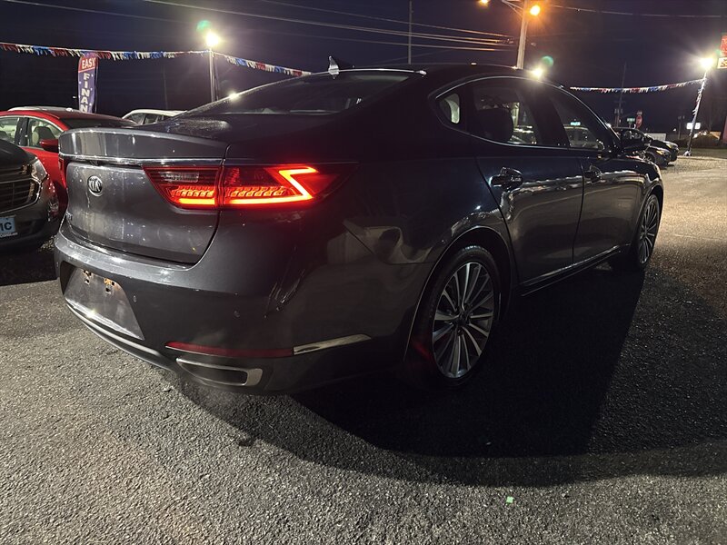 2017 Kia Cadenza Limited — Platinum Graphite exterior with Black interior. This Cadenza is powered by a 3.3L V6 producing 290 hp and 253 ft-lbs of torque, paired with an automatic transmission and front-wheel drive. EPA fuel economy is rated at approximately 20 MPG city and 28 MPG highway. The vehicle is in excellent overall condition and has a clean CARFAX report.